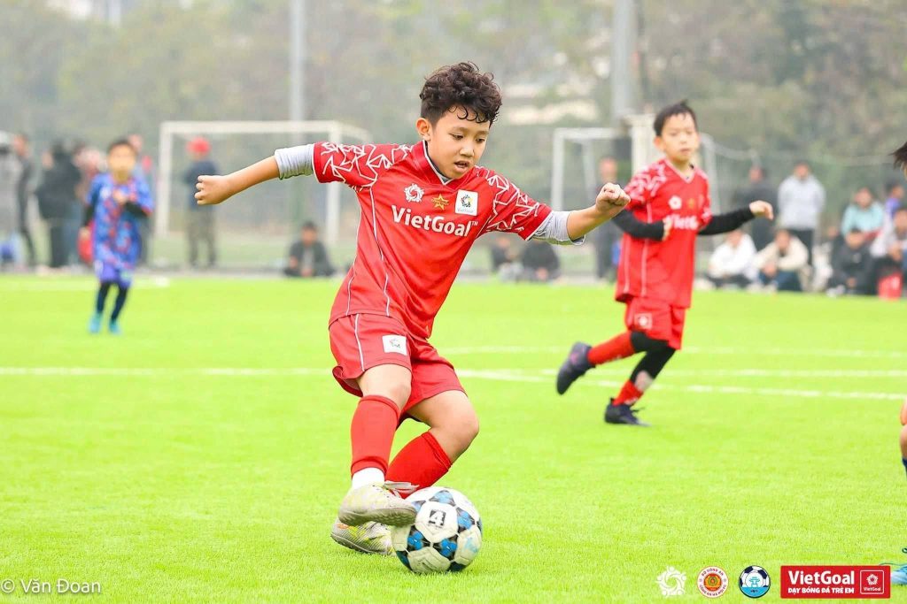 Cầu thủ nhí Anh Khoa, sinh năm 2017, đang là gương mặt tiêu biểu của U9 VietGoal sau khi cùng đồng đội lập thành tích ấn tượng với hai chức vô địch liên tiếp. Em chinh phục ban huấn luyện và người hâm mộ bằng tư duy chơi bóng chững chạc song hành với bảng thành tích học tập đáng nể tại trường.