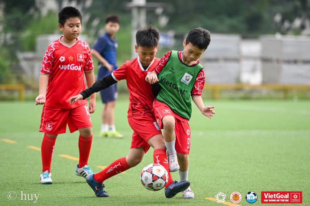 HLV liên tục động viên, điều chỉnh và tạo môi trường vui vẻ để các em tự tin thể hiện khả năng. Buổi tập kết thúc với những nụ cười rạng rỡ, phản chiếu tinh thần đoàn kết và sự tiến bộ của các cầu thủ nhí VietGoal trong hành trình khám phá bóng đá.