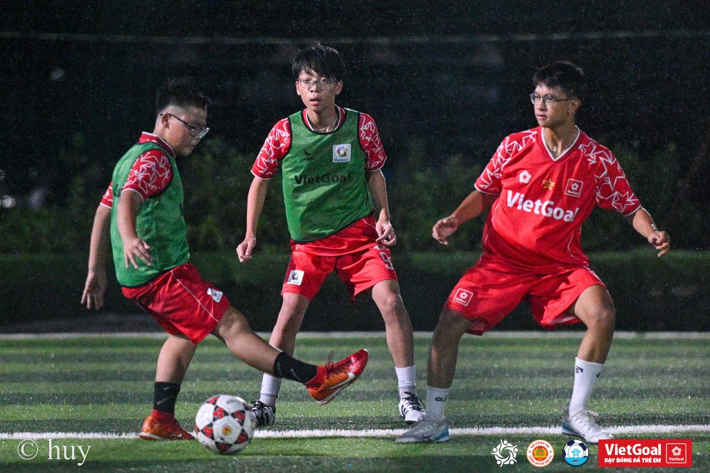Các cầu thủ nhí không hề ngần ngại, thậm chí còn thích thú khi được chạy trên mặt sân ướt át, chuyền bóng nhanh hơn và dứt điểm mạnh hơn. Những giọt mưa văng tung tóe theo từng cú sút, từng pha trượt ngã cũng không làm giảm đi niềm vui, trái lại càng khiến nụ cười của các em thêm rạng rỡ.