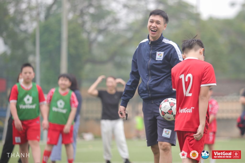 HLV hướng dẫn lại từng chi tiết nhỏ: cách đặt bóng, số bước chạy đà, hướng mở thân người và điểm tiếp xúc trên mu bàn chân. Có bạn sút quá mạnh khiến bóng vọt xà. Có bạn chần chừ nên cú sút thiếu dứt khoát. Mỗi lần như vậy, HLV chỉnh ngắn gọn rồi cho thực hiện lại ngay.