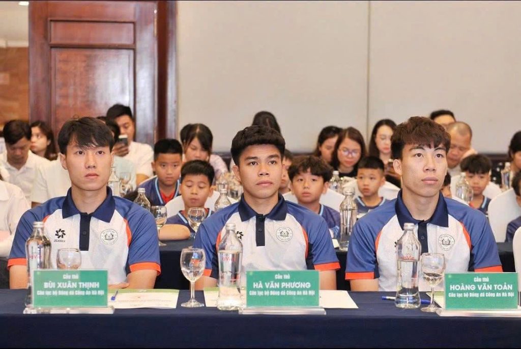 CẦU THỦ VIETGOAL KHOÁC ÁO CÔNG AN HÀ NỘI ĐẠI DIỆN NHI ĐỒNG CẢ NƯỚC DỰ HỌP BÁO CÔNG BỐ GIẢI U9 TOÀN QUỐC TOYOTA CUP 2026.