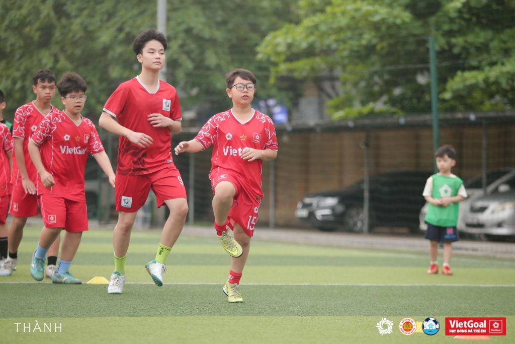 Chiều Chủ nhật tại sân Cổ Nhuế thường có cảm giác khác với các buổi trong tuần. Sau khi hoàn thành phần khởi động và bài tập kỹ thuật, phần thi đấu luôn được kéo dài hơn một chút. Đây cũng là lúc các con được chơi bóng nhiều nhất sau một tuần tập luyện.