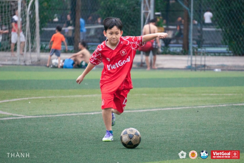 Khi vào thi đấu, lợi thế không gian thể hiện rõ. Có những pha kéo bóng dài, có những tình huống chuyển trạng thái nhanh từ sân nhà lên sân đối phương. Các con phải liên tục di chuyển để giữ vị trí và hỗ trợ nhau.