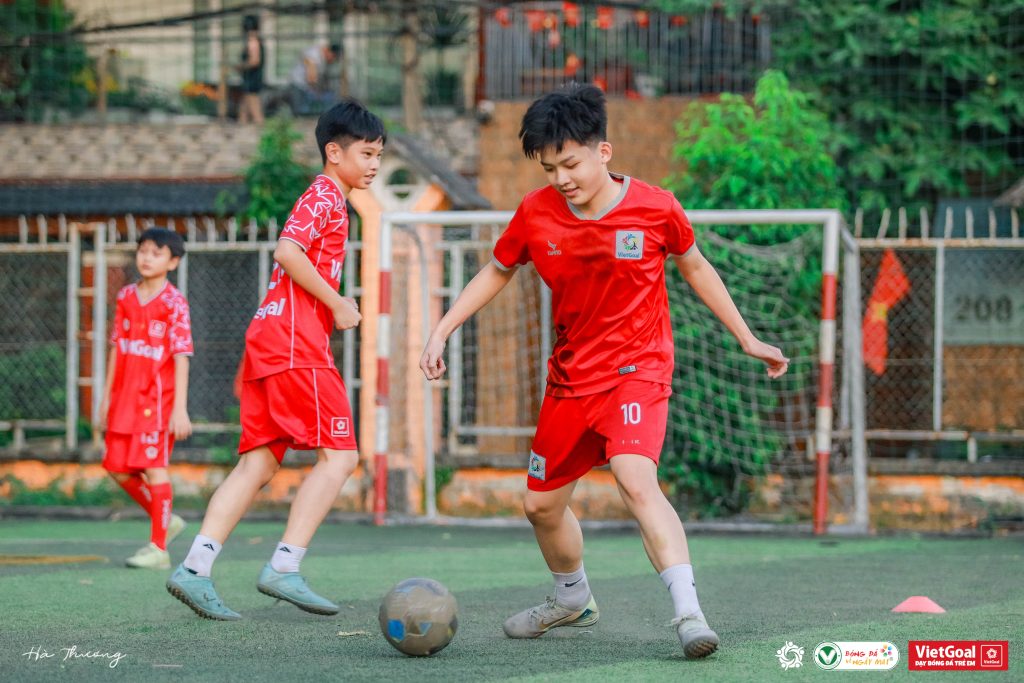 Điều đặc biệt ở Gia Phúc là sự tương phản rất rõ ràng. Ngoài sân, em vẫn là cậu bé hồn nhiên, lễ phép và giàu năng lượng. Nhưng khi tiếng còi vang lên, Phúc lập tức “chuyển trạng thái” bình tĩnh, lì lợm và không dễ bị tác động bởi xung quanh. Đó là tố chất hiếm thấy ở một cầu thủ nhí sinh năm 2017.