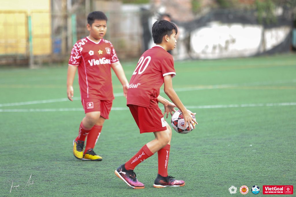 Bài tập tưởng chừng đơn giản này giúp các em hiểu sâu hơn về cảm giác không gian, khả năng phối hợp nhịp nhàng và sự nhanh nhạy trong xử lý tình huống. Quan trọng hơn, tiếng cười giòn giã và sự tò mò đã biến buổi tập hôm đó thành một kỷ niệm khó quên với tất cả cầu thủ nhí VietGoal Chu Văn An.