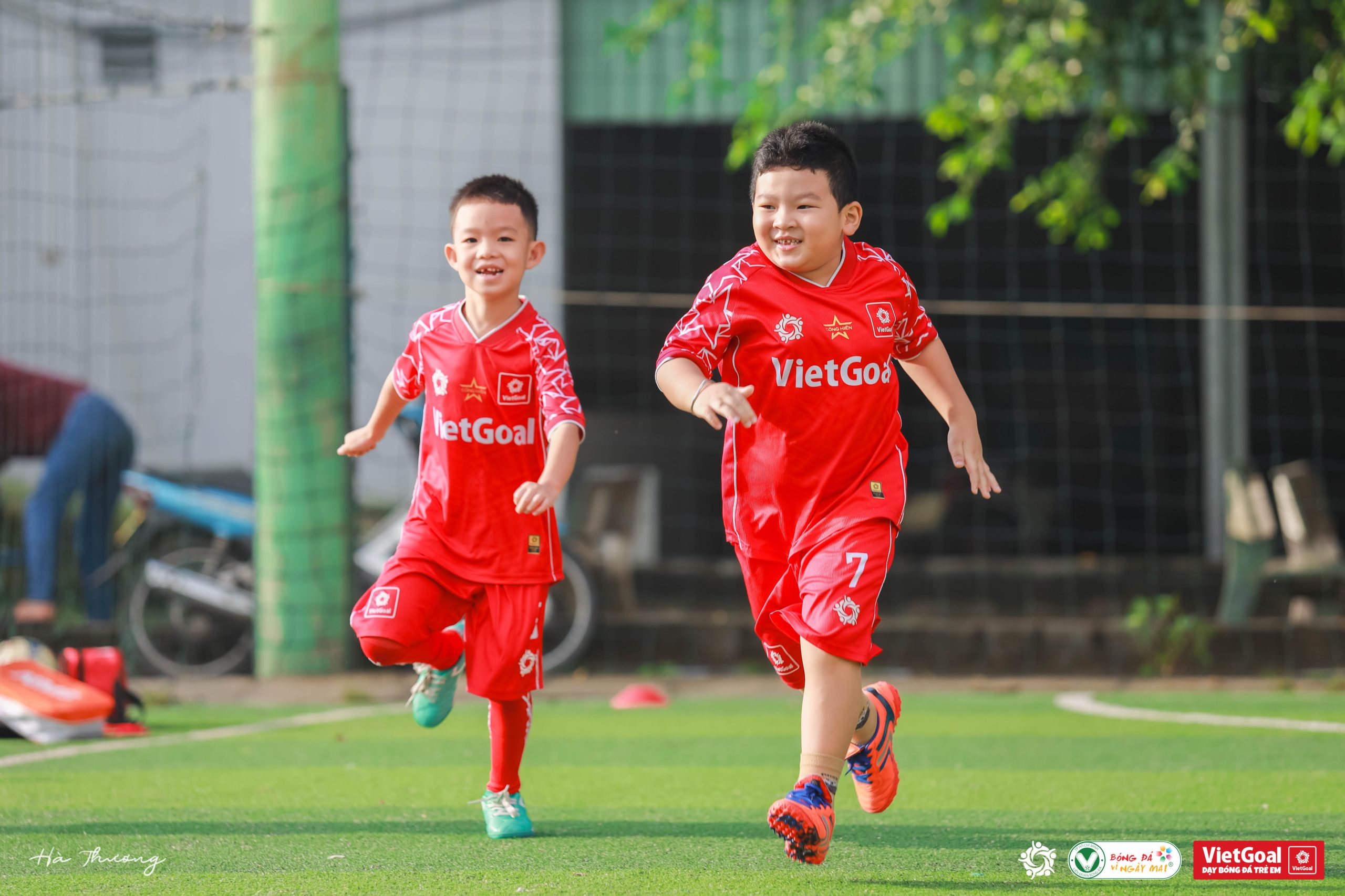 Giữa sân cỏ đầy tiếng cười, hình ảnh hai cậu bạn nhỏ cùng chạy, cùng cười, cùng cố gắng là minh chứng cho điều giản dị: tình bạn chân thành luôn bắt đầu từ những ước mơ chung.
