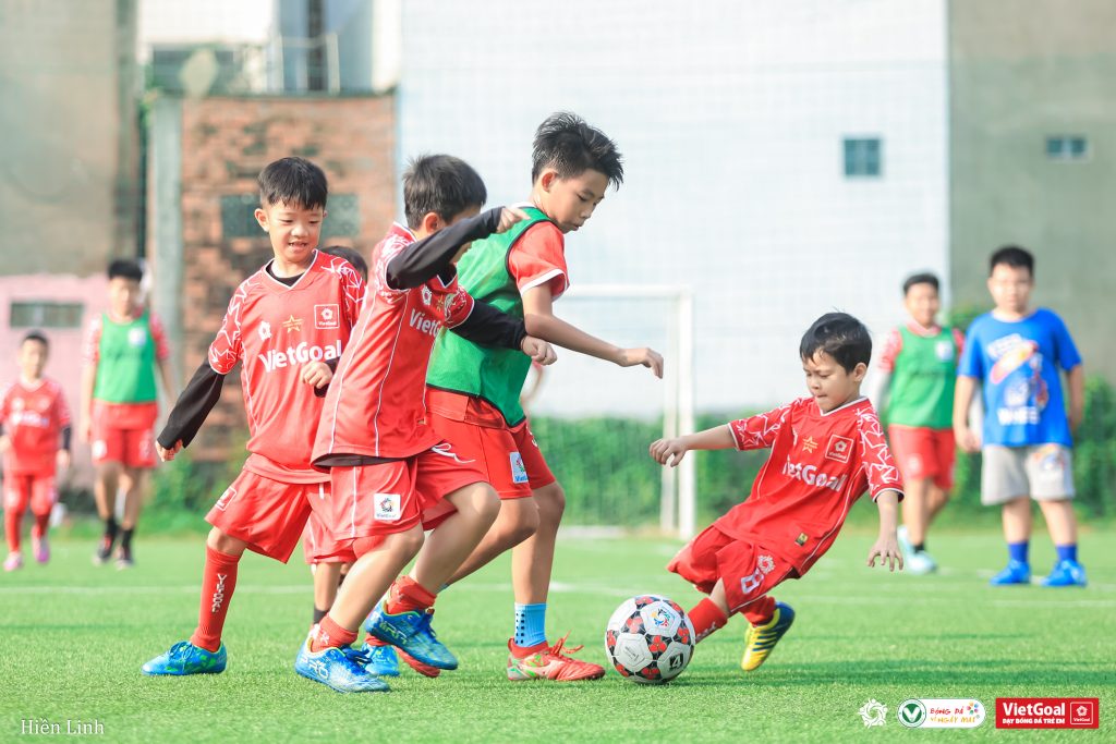 Sáng chủ nhật ở sân Gò Vấp 3, tiết trời Sài Gòn hiếm hoi se lạnh, đủ để các em nhỏ kéo thêm chiếc hoodie, có bạn mặc áo tay dài bên trong sắc đỏ quen thuộc. Trên sân cỏ, sắc lạnh của thời tiết chỉ chạm vào da, còn tinh thần ham học thì nóng hổi và rực rỡ hơn bất cứ gam màu nào.