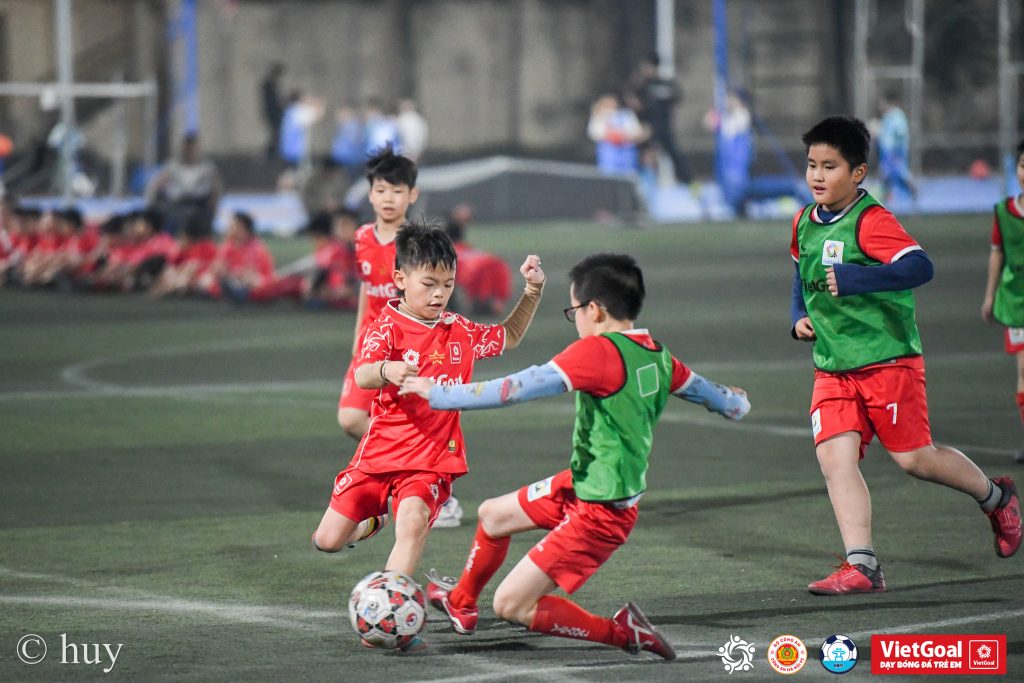 Dưới sự chỉ đạo của HLV hai đội, các cầu thủ nhí thi đấu đầy tự tin và chủ động. VietGoal C500 triển khai lối chơi dựa trên những đường chuyền ngắn, di chuyển linh hoạt để kéo giãn đội hình đối phương. Bên kia sân, VietGoal Văn Phú đáp trả bằng những pha phản công nhanh, tạo ra nhiều thử thách cho hàng thủ đội chủ nhà. Mỗi lần bóng lăn gần khung thành đều khiến khán giả nhỏ tuổi bên ngoài sân hào hứng theo dõi.