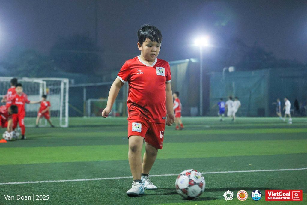 Buổi tập diễn ra sôi nổi gần hai giờ, ghi nhận sự tiến bộ rõ rệt về tốc độ và tư duy xử lý của các cầu thủ nhí.