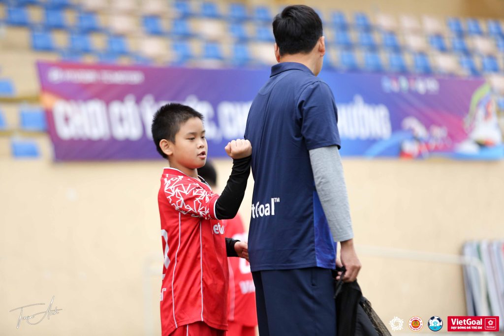 Tiếng cười vang lên, nhưng ẩn sau đó là một khoảnh khắc ấm áp của tình thầy trò. Giữa những buổi tập nghiêm túc, những giây phút như vậy lại khiến sân cỏ VietGoal Hà Đông thêm gần gũi và thân thương hơn bao giờ hết.
