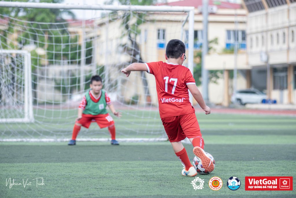 Áp lực đè nặng lên từng đôi chân nhỏ. Có cậu bé cúi xuống buộc lại dây giày, đôi tay khẽ run nhè nhẹ. Có cầu thủ nhí ở ngoài sân không ngừng vỗ tay, hô vang: “Cố lên! Cố lên!”, mong tiếp thêm sức mạnh cho đồng đội. Mỗi bước chân tiến đến chấm phạt đền đều là một thử thách lớn về bản lĩnh. Những cú sút được tung ra, có cú căng như kẻ chỉ, nhưng cũng có cú sút đi chệch khung thành trong sự tiếc nuối.
