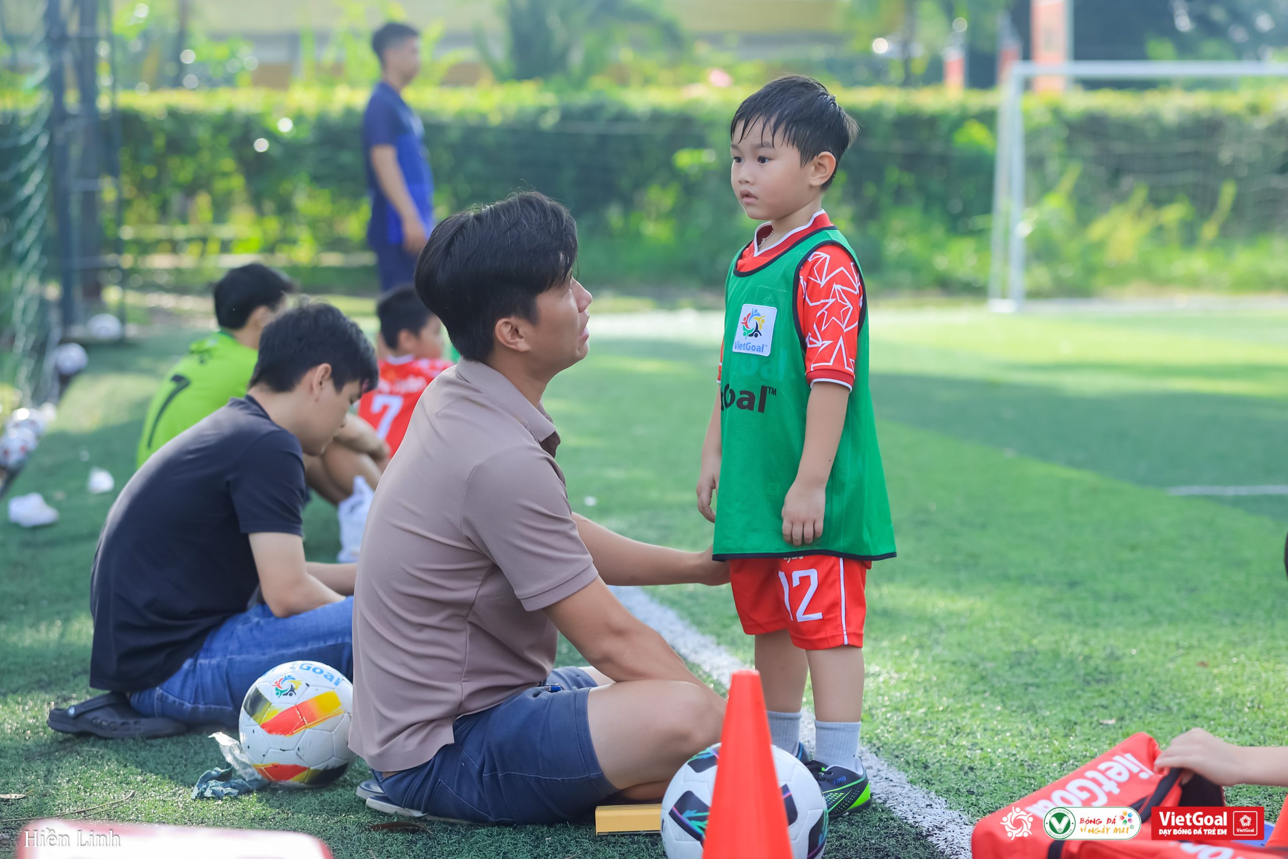 Chiều ngày 4/10, sau khi các học viên hoàn thành phần khởi động quen thuộc, các huấn luyện viên của VietGoal – Trung tâm Bóng đá Trẻ em đã tập trung tăng cường các bài tập rèn luyện cảm giác bóng. Với tinh thần nghiêm túc và hứng khởi, các em được hướng dẫn thực hiện nhiều bài tập kỹ thuật nhằm cải thiện khả năng kiểm soát và xử lý bóng trong không gian hẹp. Sự tỉ mỉ của huấn luyện viên cùng tinh thần tập luyện chăm chỉ của học viên đã tạo nên bầu không khí sôi nổi và đầy nhiệt huyết trên sân tập.