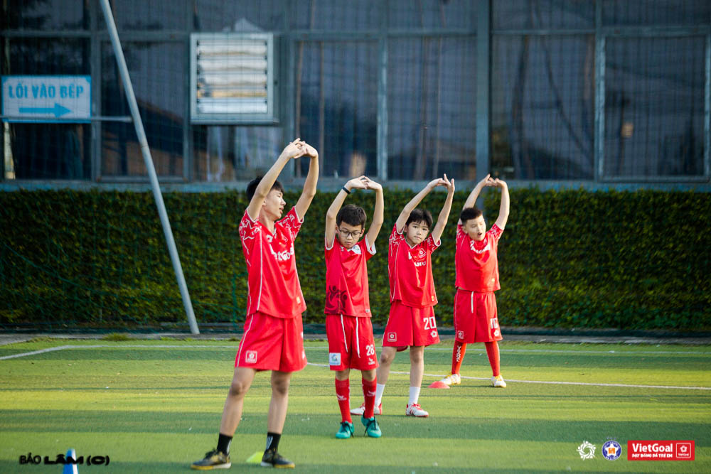 Chiều ngày 18/1, sân Tùng An Sinh như được khoác lên mình một nguồn năng lượng mới khi các học viên nhí của VietGoal – Trung tâm Bóng đá Trẻ em hào hứng bước vào buổi tập cuối ngày. Dưới ánh nắng dịu nhẹ còn sót lại, các em nhanh chóng hòa nhịp cùng thầy cô trong phần khởi động bài bản, giúp cơ thể làm nóng, sẵn sàng cho những hoạt động vận động liên tục phía trước.