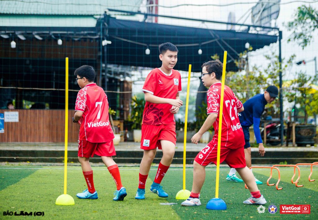 Sáng ngày 25/10, khi những cơn mưa vừa dứt, không khí trên sân Xuân 68 (phường Hòa Xuân, thành phố Đà Nẵng) trở nên trong lành, mát mẻ. Tận dụng thời tiết thuận lợi, huấn luyện viên Hoài Nam của VietGoal – Trung tâm Bóng đá Trẻ em nhanh chóng cho các học viên bước vào buổi tập sôi nổi.