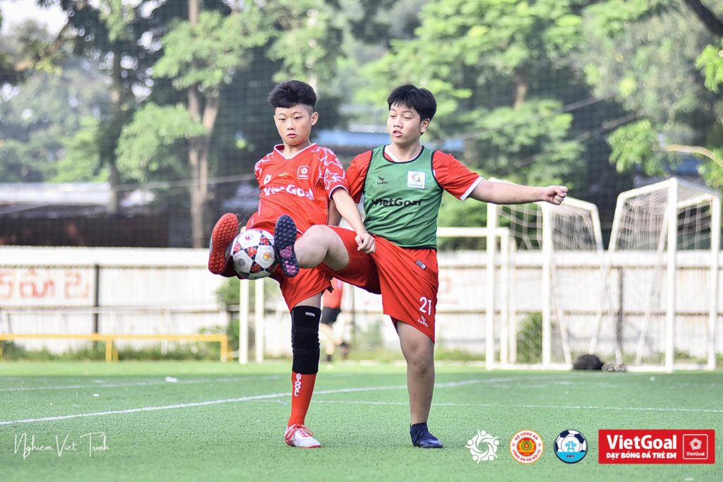 Sáng 12/10, sân bóng VietGoal Hoàng Liệt đã chứng kiến một trận đấu nội bộ kịch tính và đầy cảm xúc. Mọi chuyện bắt đầu đầy hứng khởi khi Đức Thành ghi bàn mở tỉ số. Cậu bé lập tức có một pha ăn mừng kiểu “lau giày” vô cùng đặc biệt và tự tin.