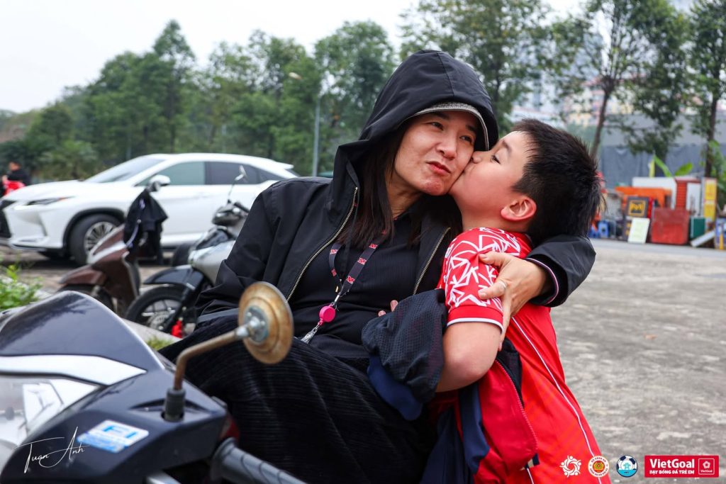 Tại sân tập VietGoal Hoàng Mai, sau khi buổi tập khép lại, nhiều cậu bé chạy thật nhanh về phía mẹ, bà hay chị đang đứng đợi. Có em ôm chầm lấy mẹ, có em rụt rè nói một câu chúc nhỏ, nhưng tất cả đều mang theo sự chân thành rất đáng yêu. Những cái ôm bất ngờ ấy khiến nhiều phụ huynh không khỏi xúc động.