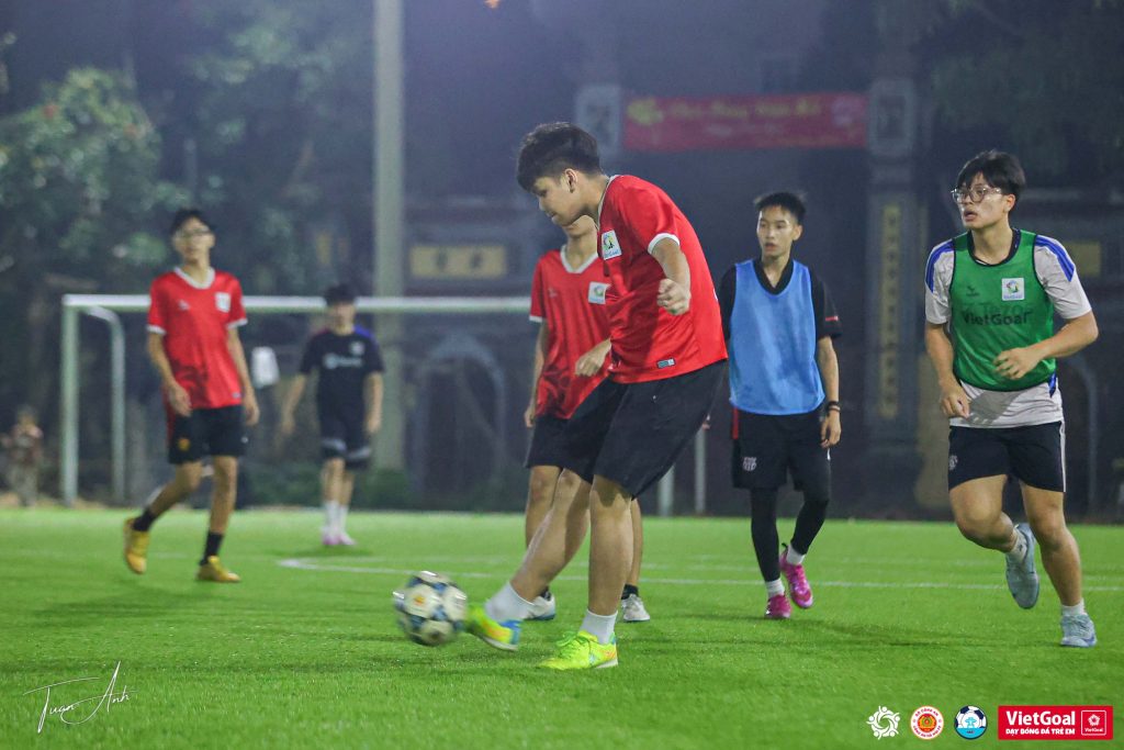 Vẫn trong buổi tập tại VietGoal – Trung tâm Bóng đá Trẻ em Kiến Hưng, bầu không khí trên sân được đẩy lên cao trào khi các trận đấu giao hữu giữa VietGoal Kiến Hưng và VietGoal Hà Đông lần lượt diễn ra ở ba lứa tuổi U7, U9 và U13. Ngay từ những pha chạm bóng đầu tiên, sự quyết tâm đã hiện rõ trên từng gương mặt nhỏ bé, tiếng gọi nhau phòng ngự, tiếng thúc giục tấn công vang lên liên tục khắp mặt sân.