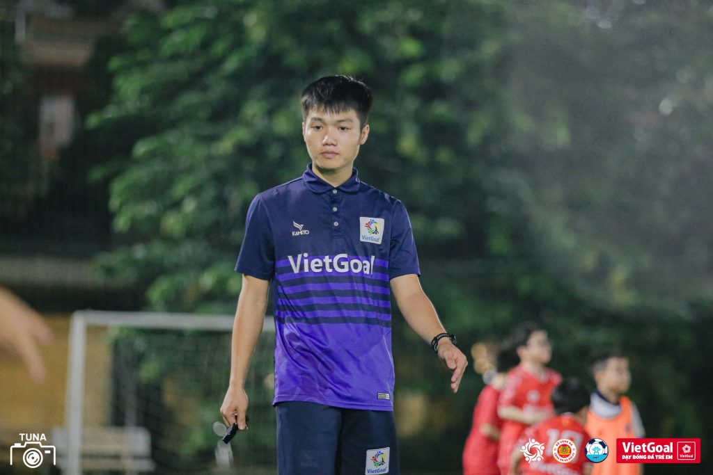 Thầy Tuấn vốn vui tính, dạy các bé nhỏ mà cứ như đang chơi cùng tụi bạn nhí. Cứ mỗi lần các con sút trượt, thầy lại hét “Ôi trời ơi, trái bóng bay về nhà bác bảo vệ rồi kìa!” khiến lũ nhỏ cười ngặt nghẽo. Nhưng xen giữa những trận cười ấy, từng động tác nhỏ vẫn được uốn nắn kỹ càng — vì đằng sau sự “nhí nhố” là cả một bài học về kỹ thuật và tinh thần tập trung.