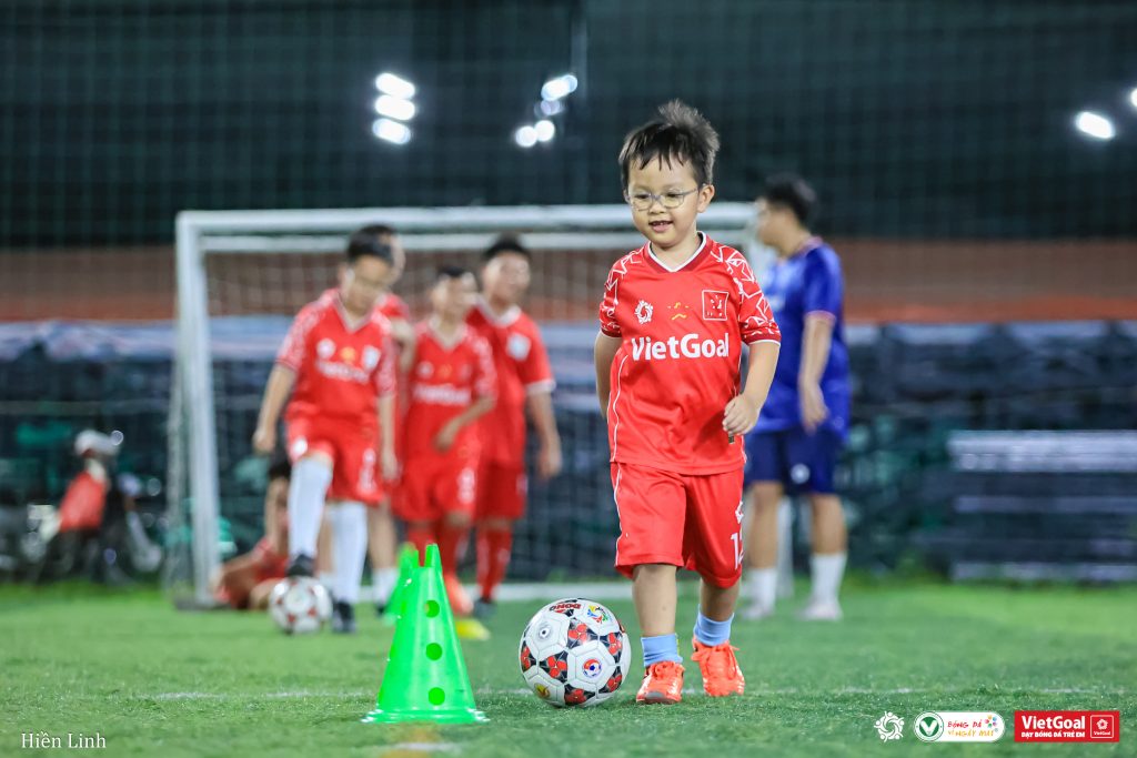 Chiều chủ nhật tại VietGoal Phú Mỹ Hưng 1, giữa những bước chạy quen thuộc, có một cậu bé nhỏ nhất sân khiến tôi phải dừng lại lâu hơn. Trần Nhật Khôi, sinh năm 2020, mới 6 tuổi, gia nhập VietGoal từ 03/08/2025, nhưng đã sớm trở thành “em út” được thầy và các anh đặc biệt quan tâm, chăm sóc.