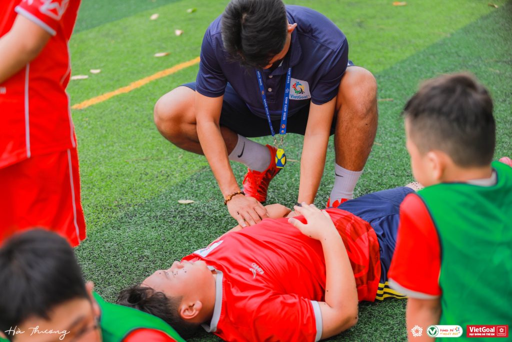 Trong một buổi tập ở VietGoal Tân Bình 2, giữa tiếng hò reo và những pha bóng sôi nổi, một khoảnh khắc nhỏ đã khiến nhiều người đứng bên lề sân lặng đi. Trong lúc trận cầu quyết liệt nhất, một cầu thủ chẳng may ngã, cú va chạm ở tay khiến em “bất động”. Giữa đám bạn còn bối rối, … chạy lại, rồi thoăn thoắt chạy về phía đường biên. Em mở nắp ly nước của mình, lấy viên đá trong ly ra, nhẹ nhàng đưa cho thầy chườm lên chỗ sưng cho bạn.