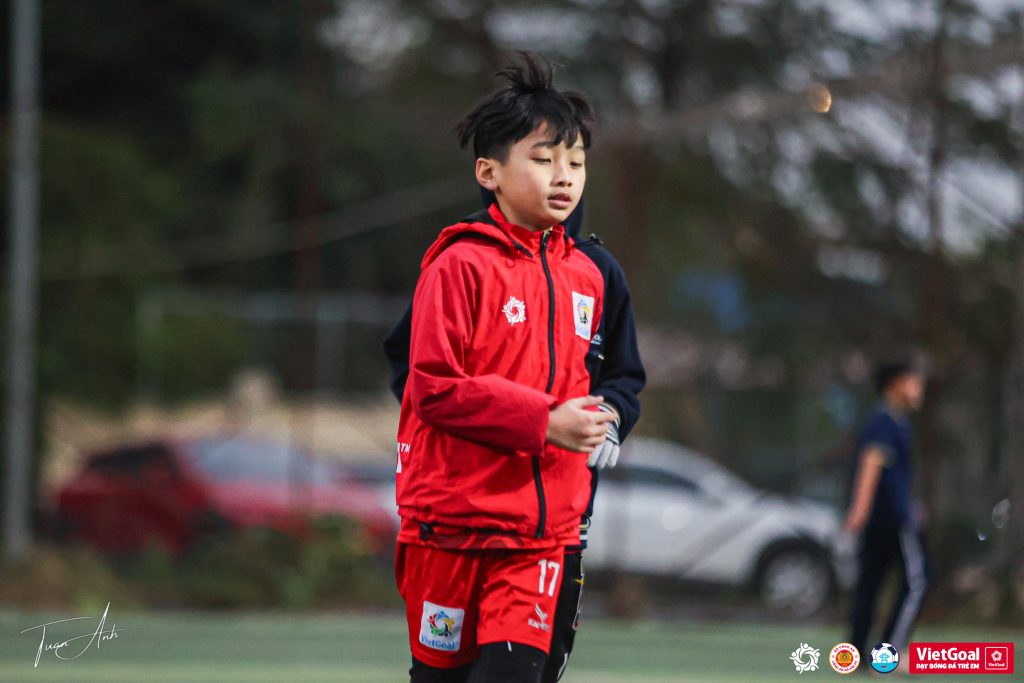 Chiều buổi tập tại VietGoal – Trung tâm Bóng đá Trẻ em Tây Mỗ, An Khang trở thành cái tên được nhắc đến nhiều nhất trên sân. Là cầu thủ nhỏ tuổi nhất đội, cậu bé tưởng chừng lép vế giữa các anh lớn hơn, nhưng thực tế lại hoàn toàn ngược lại. Ngay từ những phút khởi động đầu tiên, An Khang đã cho thấy nguồn năng lượng dồi dào, luôn chạy không biết mệt, sẵn sàng lao vào mọi bài tập được HLV giao.