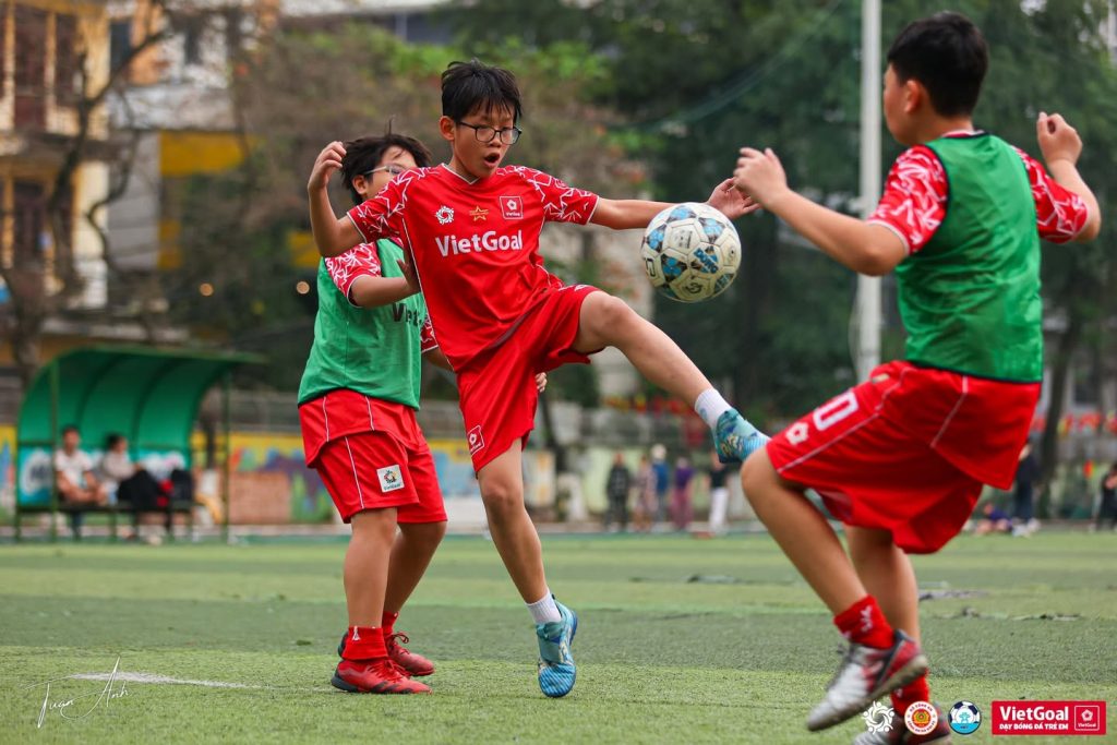 Chiều ngày 08/03/2026 tại sân VietGoal Thanh Xuân, những trận đấu tập của lứa U11 dưới sự dẫn dắt của HLV Nguyễn Hoài Nam diễn ra với nhịp độ rất khác. Không vội vàng, không đá theo cảm hứng, các cầu thủ nhí triển khai bóng chậm rãi và cẩn thận, từng đường chuyền được thực hiện có tính toán. Từ tuyến dưới đến phía trên, bóng được luân chuyển gọn gàng, chính xác, thể hiện rõ dấu ấn chiến thuật mà thầy Nam đã kiên trì xây dựng cho các học trò.