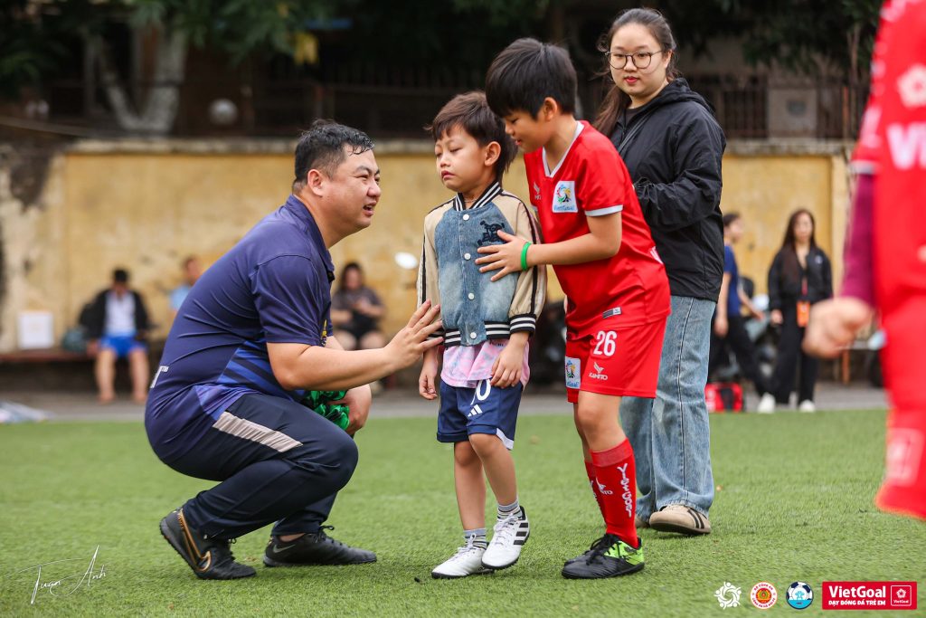 Nhưng ngay khi nhận ra điều đó, HLV Nguyễn Anh Sơn đã nhẹ nhàng đến gần, hỏi han và động viên. Các cầu thủ nhí trong sân cũng chủ động lại gần, nắm tay, rủ bạn đứng cùng, kể vài câu chuyện nhỏ để bạn bớt căng thẳng. Những hành động giản dị ấy giúp Hồng Đăng dần bình tĩnh hơn, không còn cảm giác lạc lõng như lúc ban đầu.