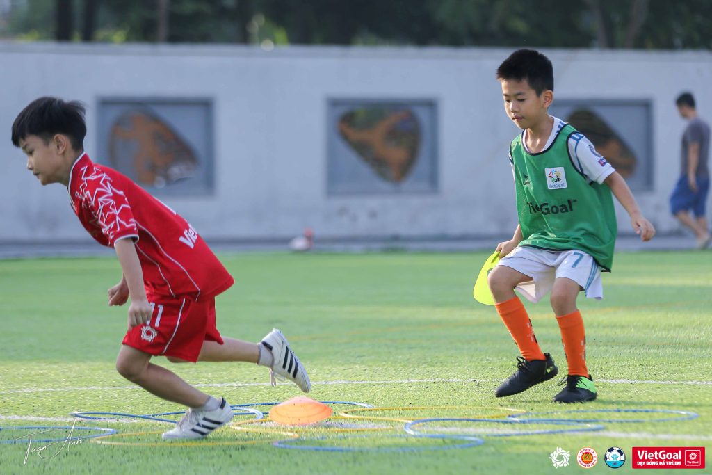 Trò chơi XO quen thuộc đã được biến tấu thành một bài tập thú vị, nơi các em vừa rèn luyện thể lực, phản xạ, vừa học cách quan sát và phối hợp với đồng đội. Giữa những tiếng cười vang và bước chạy hối hả, niềm vui tập luyện đã trở thành động lực để mỗi học viên nhỏ tuổi thêm yêu sân cỏ VietGoal hơn mỗi ngày.