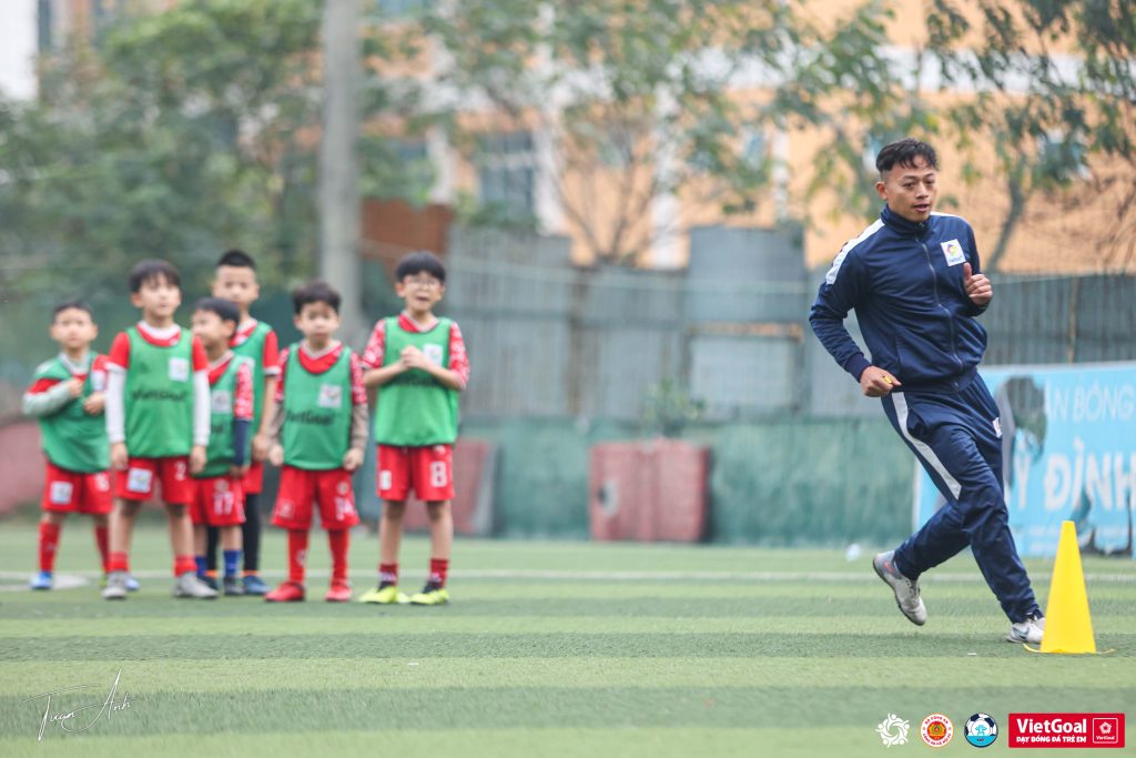 Chiều 04/01/2026, sân VietGoal Yên Hòa nóng lên bởi một bài tập đối kháng đầy áp lực do HLV Trọng Hội trực tiếp tổ chức. Các cầu thủ nhí được chia thành hai đội, đứng sẵn ở vạch xuất phát, ánh mắt tập trung cao độ chờ hiệu lệnh. Không khí trên sân căng thẳng ngay từ những phút đầu, bởi mỗi pha xử lý đều có thể quyết định điểm số cho cả đội.