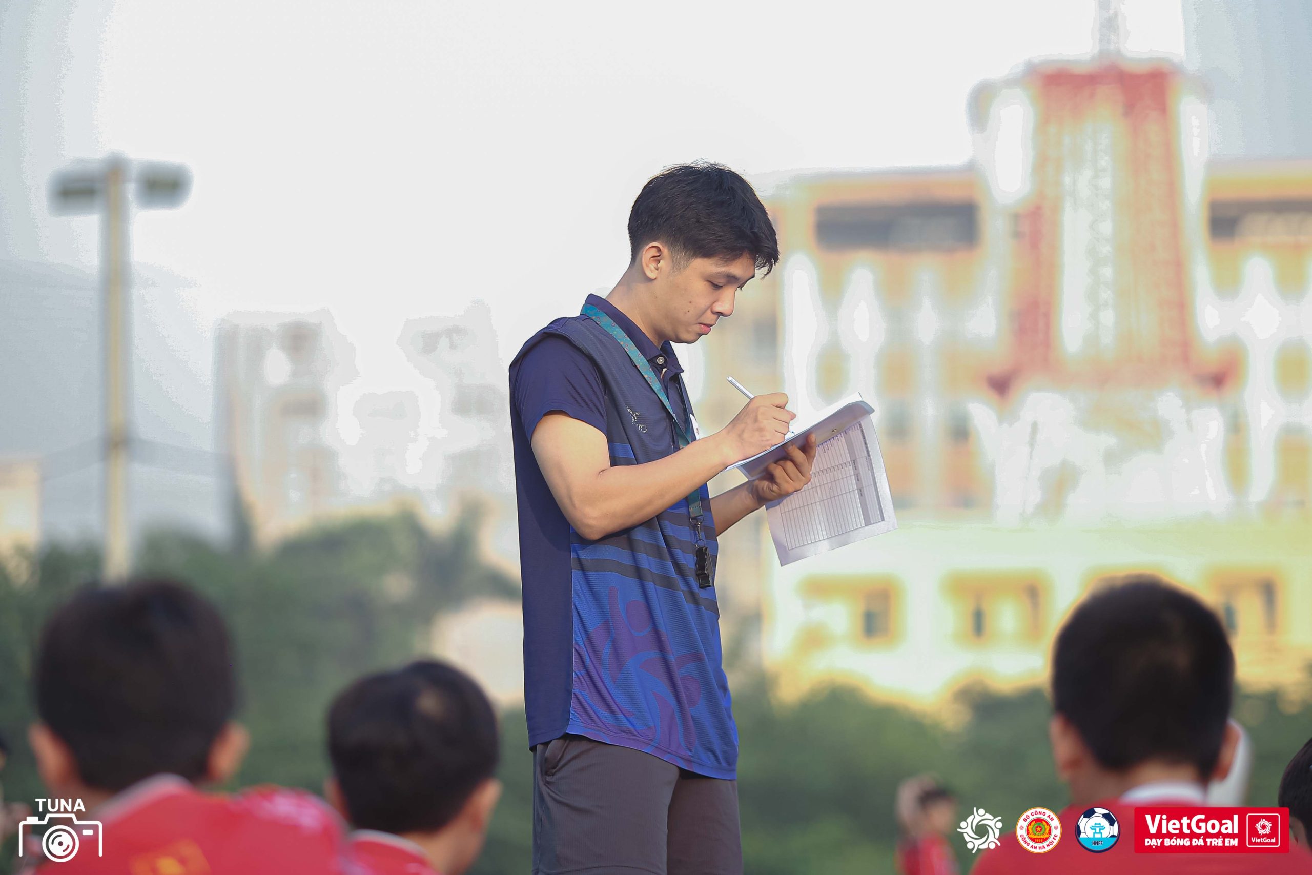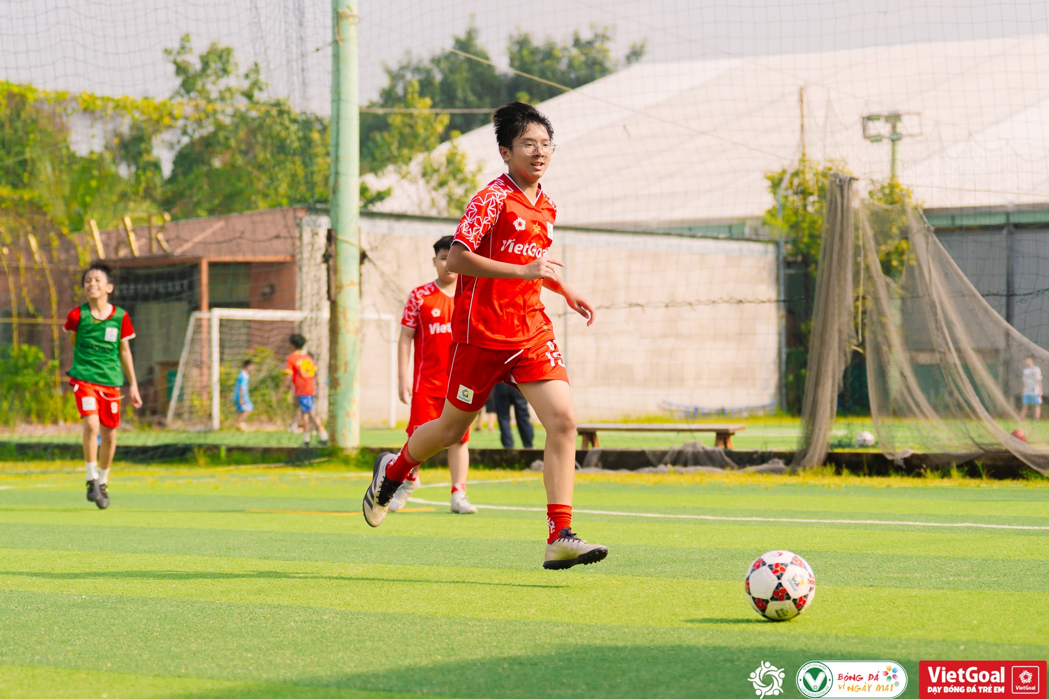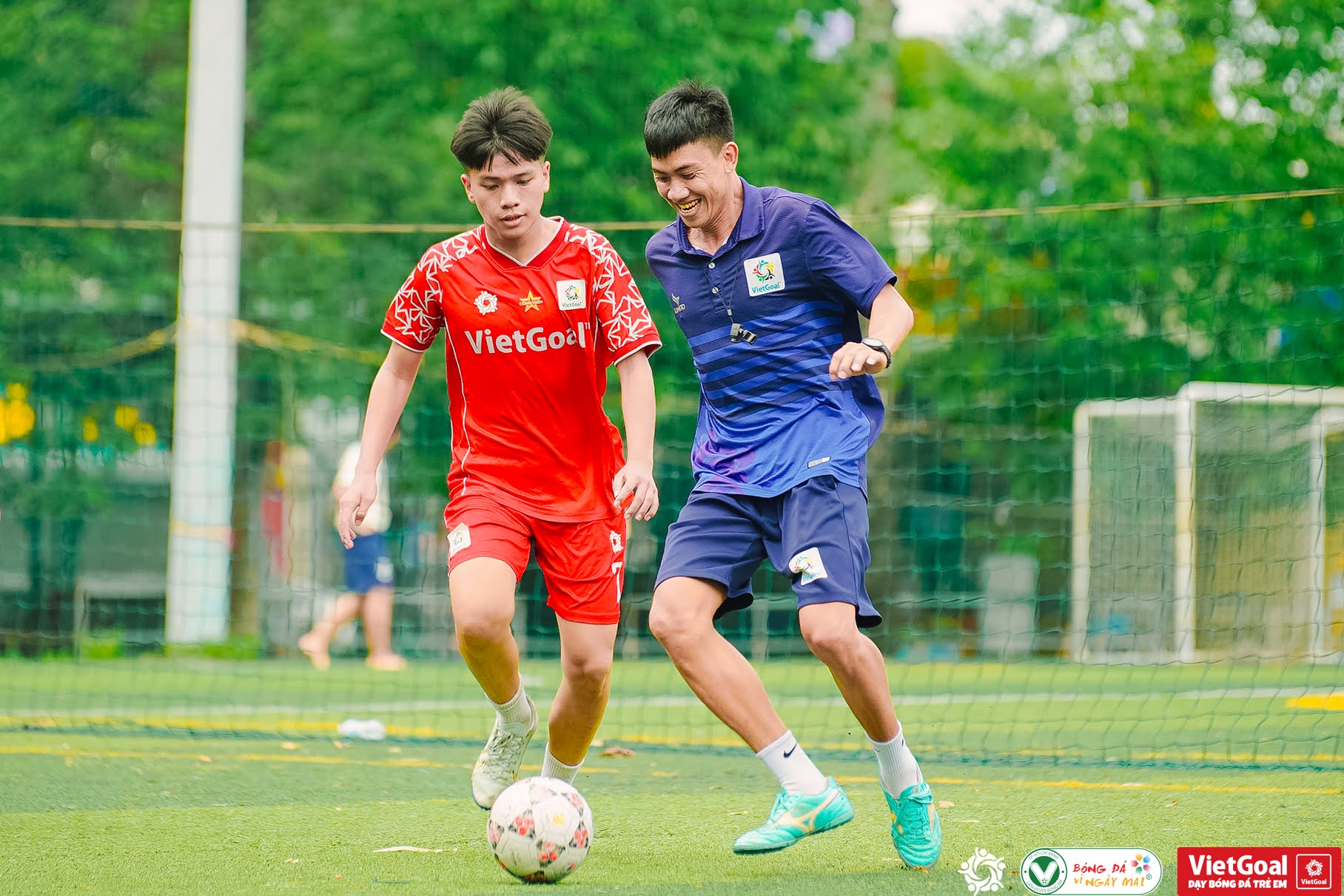Sáng ngày 04/10/2025 tại sân VietGoal Tố Hữu, buổi tập diễn ra trong bầu không khí vừa sôi động, vừa đong đầy cảm xúc. Trên sân, các cầu thủ nhí tập trung vào từng đường bóng, từng cú sút. Có em mím môi cố gắng khi thực hiện bài tập khó, có em ngồi thụp xuống vì tiếc nuối sau pha xử lý chưa trọn vẹn. Những biểu cảm ấy – hồn nhiên, chân thật và đầy cảm xúc – làm cho buổi tập như một bức tranh sống động của tuổi thơ và đam mê.